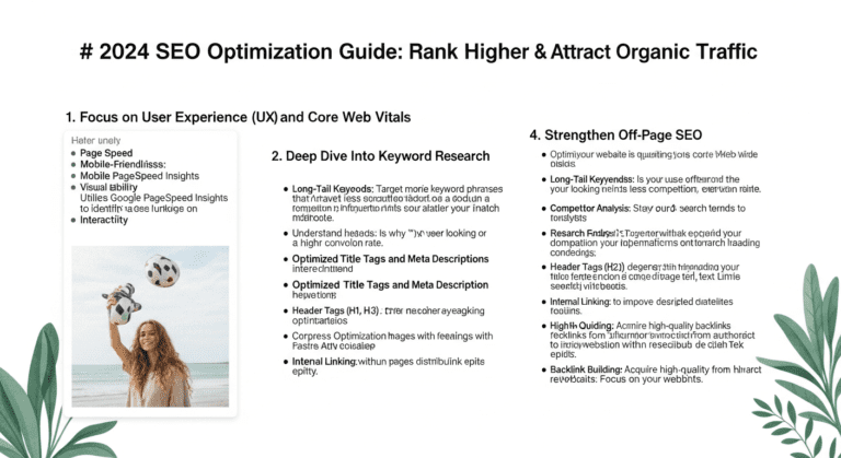 In today’s digital landscape, mastering SEO optimization is essential for any website aiming to boost its Google rankings and attract consistent organic traffic. Whether you’re a marketing professional or a business owner, understanding the latest strategies can give you a decisive edge. This comprehensive guide covers everything you need to know to stay ahead in 2024’s SEO game.