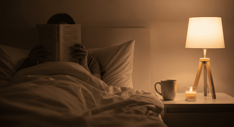 - Set the mood: Dim the lights or use a bedside lamp. Soft background music can help too.