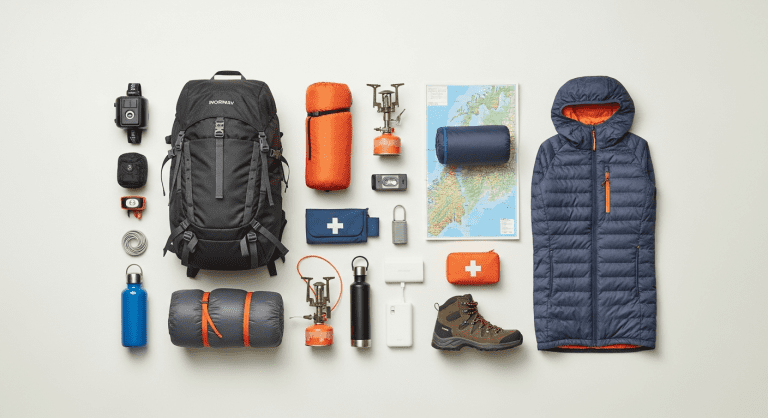 Pack for layered clothing, waterproof outerwear, durable shoes, tech essentials (adapters, chargers, offline navigation), documents, health items, and an emergency kit. Don’t forget a reusable water bottle and snacks.